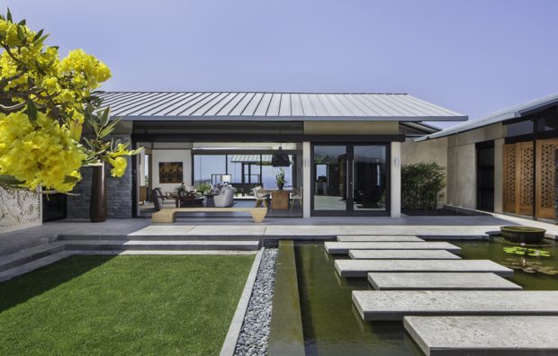 นอกจากชายคาแล้ว จุดที่เมทัลชีททำคะแนนได้ดีมากนั่นคือ สามารถออกแบบรูปทรงหลังคาต่ำได้ โดยปกติการใช้หลังคากระเบื้องจะออกแบบองศาความชันของหลังคาซีแพ็คประมาณ 25-40 องศา หรือหากเป็นหลังคาลอนคู่ สามารถออกแบบได้ต่ำลงมาอีกนิด โดยรองรับความชัน 15 องศา แต่นั่นก็ไม่สามารถเทียบกับหลังคาเมทัลชีทได้เลย เพราะสามารถรองรับความชันเพียง 4-5 องศาสำหรับรุ่นธรรมดา และต่ำสุด 2 องศาสำหรับรุ่นที่ออกแบบมาพิเศษ