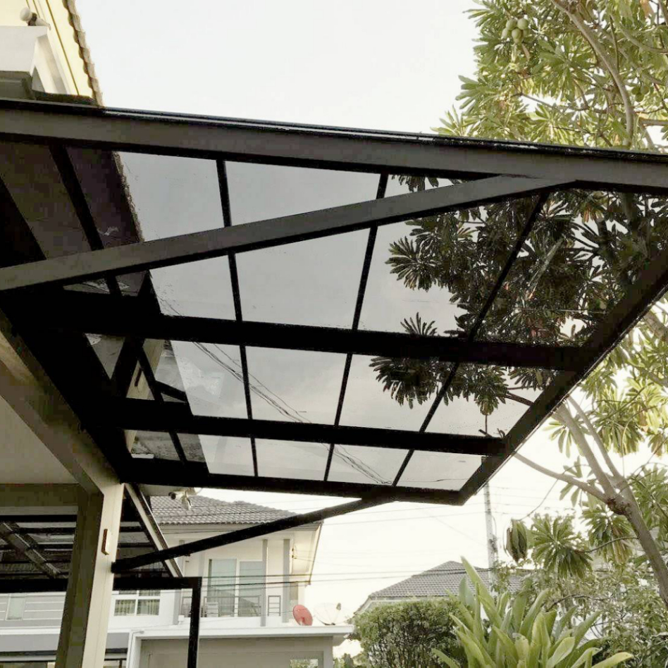 ต่อเติมหลังคากันสาดเหนือประตูหน้าต่าง หากเป็นทิศตะวันตกซึ่งต้องการกันทั้งแดดและฝน ก็ควรเลือกหลังคาทึบแสง แต่ถ้าเป็นทิศเหนือที่แดดร่มทั้งวัน อาจเลือกทำหลังคาโปร่งแสงเพื่อกันฝนโดยให้รับแสงธรรมชาติได้ทั้งวัน