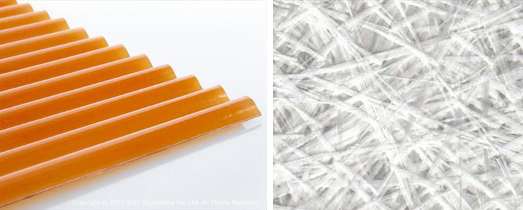 คือ การนำใยแก้วและโพลีเอสเตอร์เรซินชนิดพิเศษ มาเป็นวัตถุดิบของการผลิตหลังคาโปร่งแสง ทำให้แผ่นวัสดุมีความแข็งแรงและยืดหยุ่นขึ้น สามารถดัดโค้งได้