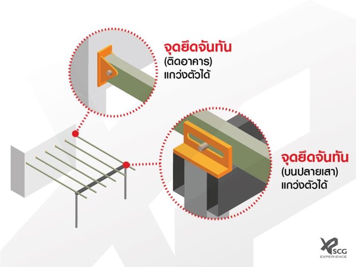 เมื่อมีพื้นโรงจอดรถเรียบร้อยแล้ว สามารถตั้งเสาเหล็กบนพื้นเพื่อรองรับหลังคาได้เลย สิ่งสำคัญในการต่อเติมหลังคาโรงจอดรถหน้าบ้านคือ ให้ทำโครงสร้างอีกชุดสำหรับรองรับหลังคาโดยไม่ฝากกับตัวบ้านเดิม เพื่อที่เวลาพื้นทรุดตัวจะได้ไม่ดึงรั้งโครงสร้างเดิมจนเสียหาย (หากจำเป็นต้องยึดโครงหลังคาเข้ากับโครงสร้างบ้านเดิมควรทำจุดเชื่อมต่อให้สามารถขยับได้)