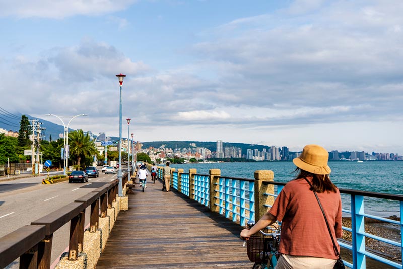 ท่าเทียบเรือบริเวณปากแม่น้ำ Tamsui ในเขตเมืองนิวไทเป เป็นย่านเมืองที่มีความคึกคักด้วยเป็นเสมือนเมืองท่าของไต้หวันทางเหนือ นักท่องเที่ยวนิยมเดินทางมาเที่ยวพักผ่อนในช่วงวันหยุดหรือหลังเลิกงาน เพราะมีบรรยากาศที่สวยงาม มองเห็นท้องทะเลกว้างใหญ่ โดยเฉพาะยามเย็นจะมีวิวของพระอาทิตย์ตกดินที่งดงามสุด ๆ มีร้านอาหารทะเลและร้านอาหารพื้นเมืองอร่อย ๆ ราคาไม่แพงให้ลิ้มลองมากมาย จิบเครื่องดื่มเย็น ๆ ไป กินอาหารอร่อย ๆ ไป พร้อมกับชมวิวสวย ๆ ไปด้วย รับรองว่าฟิน