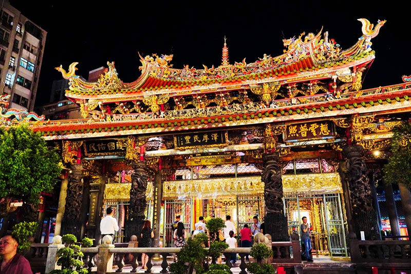 วัดเก่าแก่มากที่สุดวัดหนึ่งของไต้หวัน ตั้งอยู่ในเขตวานหัว เมืองไทเป สร้างมาตั้งแต่ปี ค.ศ. 1738 ในช่วงราชวงศ์ชิง เพื่อถวายสักการะให้กับเจ้าแม่กวนอิม และเทพม่าจ้อโป๋ คนไต้หวันให้ความเคารพอย่างมาก ในวันสำคัญจะมีผู้คนมากมายเดินทางมาเพื่อไหว้ขอพรกับเทพดังกล่าว ปัจจุบันมีเทพที่สำคัญอื่น ๆ อีกหลายองค์ เช่น เทพเฒ่าจันทรา เทพเจ้าแห่งความรัก ที่เชื่อกันว่าท่านจะเป็นผู้จับคู่ให้กับมนุษย์โดยใช้ด้ายแดงในการบูชาขอพร มีหลายคนที่สำเร็จสมหวัง จึงทำให้ที่นี่มีชื่อเสียงเรื่องการขอคู่ขึ้นมาในช่วงหลัง และทำให้เครื่องรางต่าง ๆ ได้รับความนิยมไปด้วย
