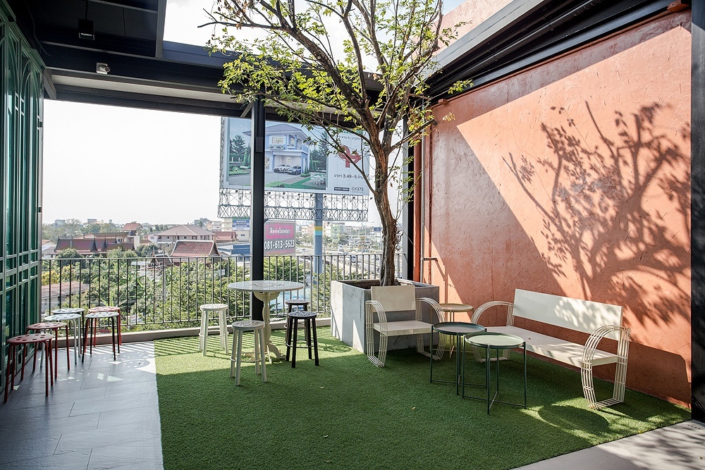 เปลี่ยนดาดฟ้าให้เป็นลานพักผ่อน ผนังสูงๆอาจทำให้บริเวณชั้นดาดฟ้าของคุณถูกบดบัง มองเห็นบริบทรอบๆไม่สะดวก แนะนำให้ปรับปรุงจากกำแพงสูงให้กลายเป็นราวระเบียงกันตกแบบโปร่ง ช่วยให้มองเห็นวิวเมือง ปูหญ้าเทียมเพิ่มความผ่อนคลาย จัดวางโต๊ะเก้าอี้เอาท์ดอร์ มุมเดิมก็กลายเป็นมุมโปรดนั่งสบา เย็นๆเดินขึ้นมานั่งชิวได้เลย