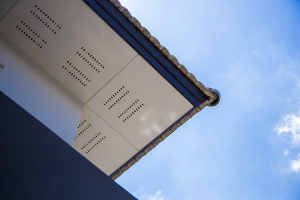 ติดฝ้าชายคาแบบมีรูระบายอากาศ : นอกจากการเลือกใช้หลังคาทรงสูงแล้ว การติดตั้งฝ้าชายคาบ้านแบบมีรูระบายอากาศ ยังสามารถช่วยระบายความร้อนออกจากโถงหลังคาได้เร็วขึ้น จึงไม่เกิดความร้อนสะสมและทำให้อุณหภูมิใต้หลังคาลดลง ซึ่งส่งผลให้อากาศภายในบ้านเย็นสบายโดยไม่รู้สึกร้อนอบอ้าวแม้ในช่วงแดดร้อนจัด