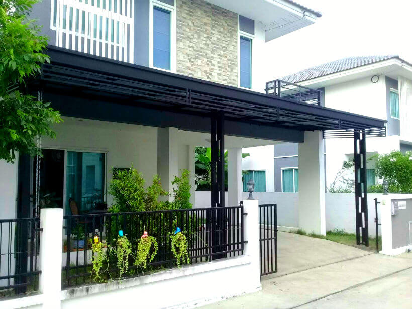 หลายคนอาจกำลังเข้าใจผิด คิดว่าโมเดิร์น กับ มินิมอล นั้นเป็นสิ่งเดียวกัน ซึ่งอาจจะคล้ายคลึงกันตรงที่ความเรียบง่าย แต่สำหรับบ้านโมเดิร์นแล้ว ต้องเน้นความสำคัญของประโยชน์ใช้สอยด้วย อย่างการใส่โครงหลังคาให้กับหน้าบ้าน จะช่วยเพิ่มมิติให้บ้านดูเป็นสัดส่วน และกันความร้อนได้เป็นอย่างดี ที่สำคัญโครงหลังคามีให้เลือกหลายรูปทรง ซึ่งแน่นอนว่ามีแบบโมเดิร์นรวมอยู่ด้วย ก็จะช่วยให้บ้านของเรามีกลิ่นอายของความโมเดิร์นสไตล์ตั้งแต่มองเข้ามาจากนอกรั้วเลย