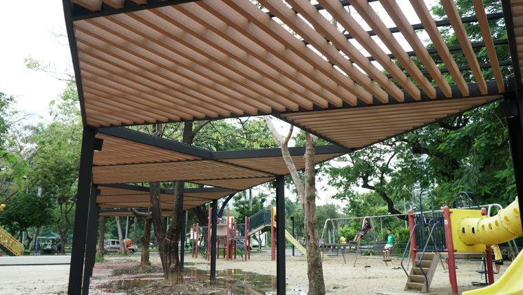 ถ้าหากไปวิ่งในสวนลุมพินีใจกลางเมือง ก็จะเห็นไม้ระแนงเกรดพรีเมี่ยมจาก SCI Wood ที่ถูกนำมาดีไซน์เป็นจุดพักผ่อนสำหรับชาวกรุงเทพฯ นอกจากจะช่วยบังแดดแล้ว ผู้ออกแบบยังเลือกสีที่เข้ากับสวนสาธารณะ และที่สำคัญ พื้นที่ส่วนนี้ก็เท่ากับเป็นศูนย์รวมผู้คน ให้เพื่อนได้มานัดเจอกัน หรือได้รู้จักแลกเปลี่ยนความคิดกับผู้คนใหม่ๆ ซุ้มไม้ระแนงที่ออกแบบด้วยไม้สังเคราะห์เกรดพรีเมี่ยมจาก SCI Wood ไม่ได้ทำหน้าที่เพียงบังแดดเท่านั้นจริงๆ