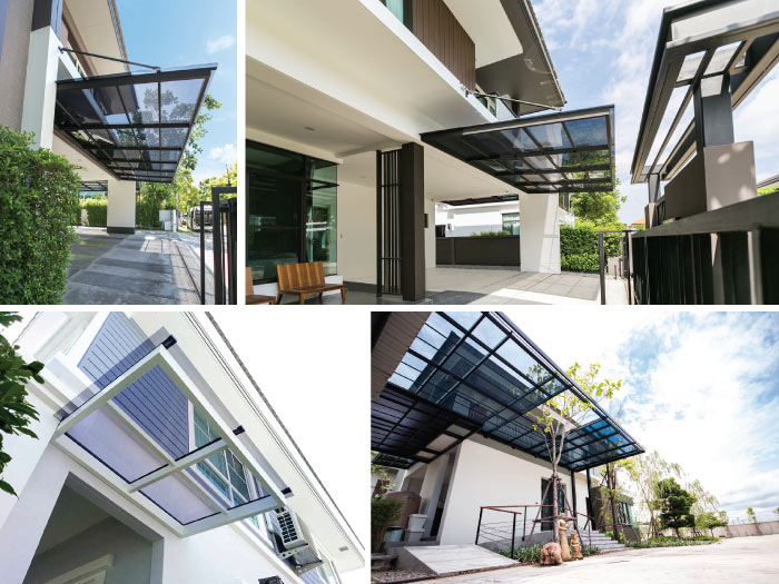 หลังคาอะคริลิก วัสดุโปร่งแสงแผ่นเรียบที่มีความคงทน แข็งแรง มีผิวเงาคล้ายกระจก มีความหนา 6 มม. สามารถเข้ากับบ้านได้หลากหลายสไตล์โดยเฉพาะบ้านสไตล์โมเดิร์น