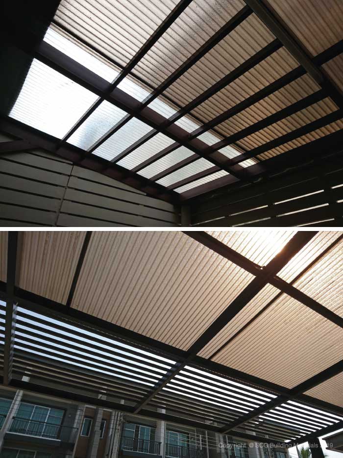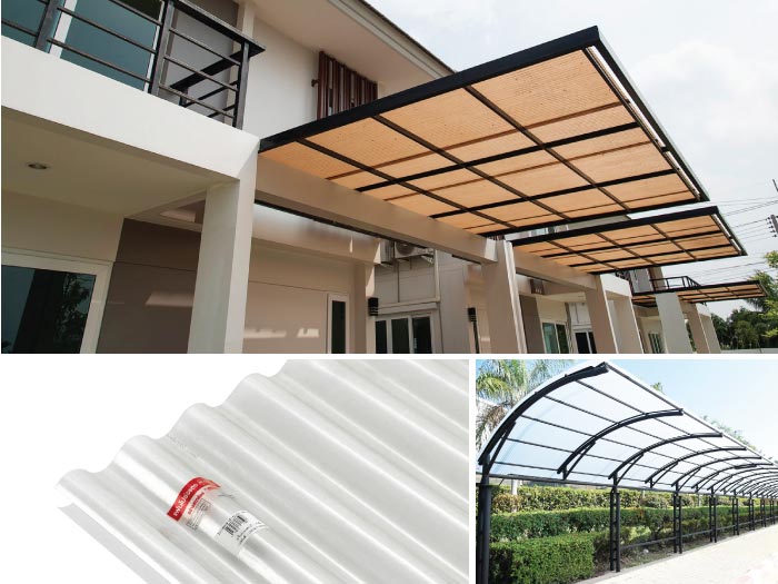 ส่วนต่อเติม เป็นส่วนที่ก่อสร้างเพิ่มออกมาจากตัวบ้านหลัก ส่วนใหญ่มักลงเสาเข็มสั้นกว่าเสาเข็มของตัวบ้านหลัก จึงนิยมเลือกใช้วัสดุที่มีน้ำหนักค่อนข้างเบา ตั้งแต่ส่วนโครงสร้างไปจนถึงวัสดุหลังคา การเลือกวัสดุหลังคาสำหรับส่วนต่อเติมนั้นนอกจากจะตัดสินใจระหว่างแบบทึบกับแบบใส/โปร่งแสงแล้ว ยังมีให้เลือกทั้งรูปแบบเรียบและรูปแบบลอนอีกด้วย ซึ่งจะขึ้นอยู่กับรูปลักษณ์หลังคาที่ตรงกับความชอบส่วนตัวหรือความเข้ากันกับสไตล์บ้านของเรา ความยากง่ายในการติดตั้ง รวมถึงงบประมาณในการก่อสร้างหลังคาส่วนต่อเติมนี้
