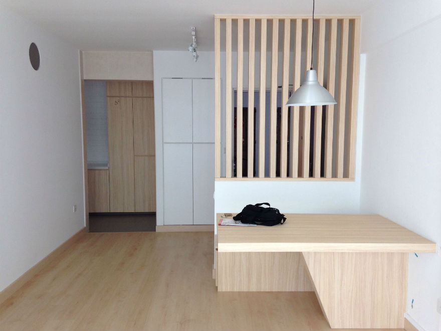 เน้นการจัดวางเฟอร์นิเจอร์เรียบๆ ที่เลือกจากความจำเป็นในการใช้งานจริง และใช้เฉพาะเฟอร์นิเจอร์ที่จำเป็นเท่านั้น อย่าลืมเน้นเฟอร์นิเจอร์จากงานไม้โทนสีเดียวกับ "พื้นไม้คอนวูด" ของเราด้วยครับ