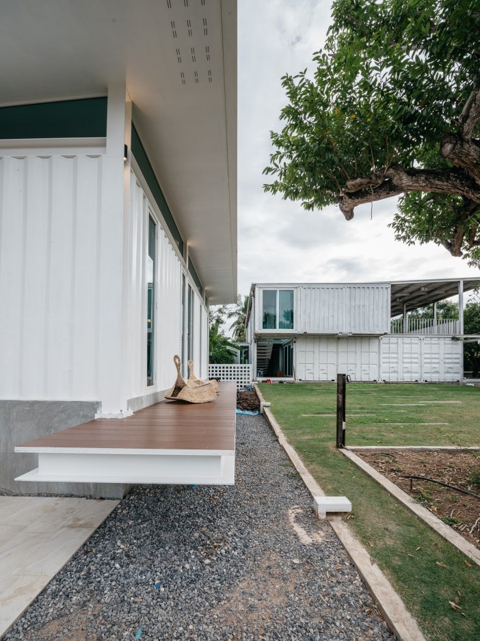 จากการออกแบบก่อสร้างบ้านหลังแรกที่ทำจากตู้คอนเทนเนอร์ทั้งหมด จะมีการตัดเอาผนังเหล็กของตู้ออกหลายส่วน เพื่อทำเป็นช่องเปิดหน้าต่างและประตู เมื่อถึงเวลาที่ต้องสร้างบ้านอีกหลังบริเวณใกล้กัน เห็นว่าวัสดุเหล่านี้ยังคงใช้งานได้ จึงนำมาใช้เป็นผนังของบ้านหลังนี้เกือบทั้งหมด เหมือนเป็นการช่วยลดปริมาณของเหลือใช้ที่เหมือนไม่มีประโยชน์ ให้เกิดคุณค่าอีกครั้ง แถมยังได้ภาพลักษณ์ที่เป็นไปในทางเดียวกัน กับบ้านหลังแรกด้วย