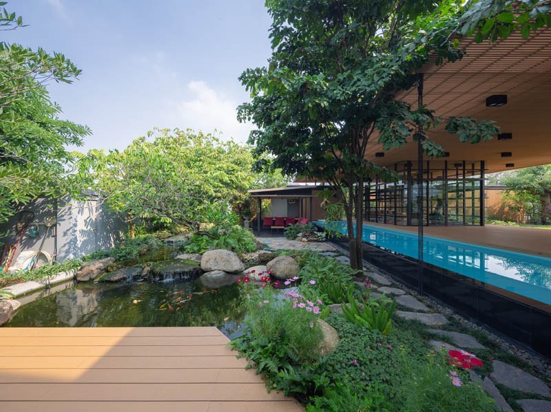 แต่ที่ Nonthaburi House นั้น ได้มีการออกแบบส่วนต่อเติมบ้านหรือ Sport Pavilion โดยคำนึงถึงการใช้ชีวิตท่ามกลางสภาพอากาศร้อน และยังมีต้นไม้น้อย – ใหญ่ อยู่เคียงข้างทุกการใช้งานอีกด้วย ส่วนแนวคิดการออกแบบจะเป็นอย่างไรนั้น มาติดตามกันค่ะ