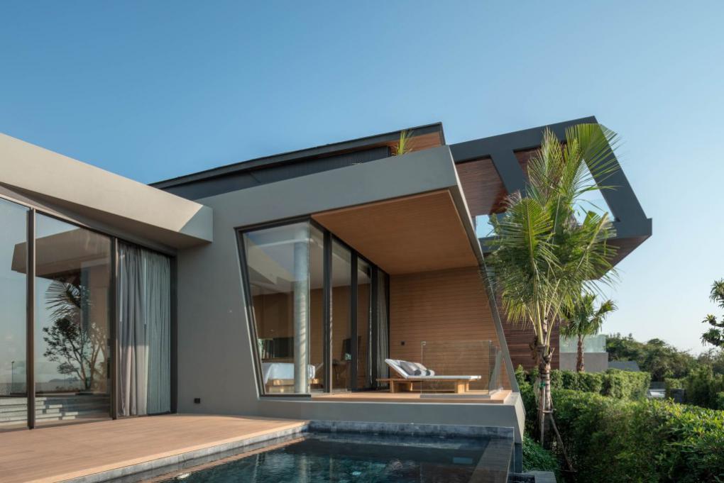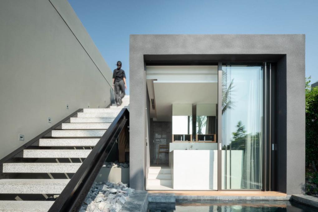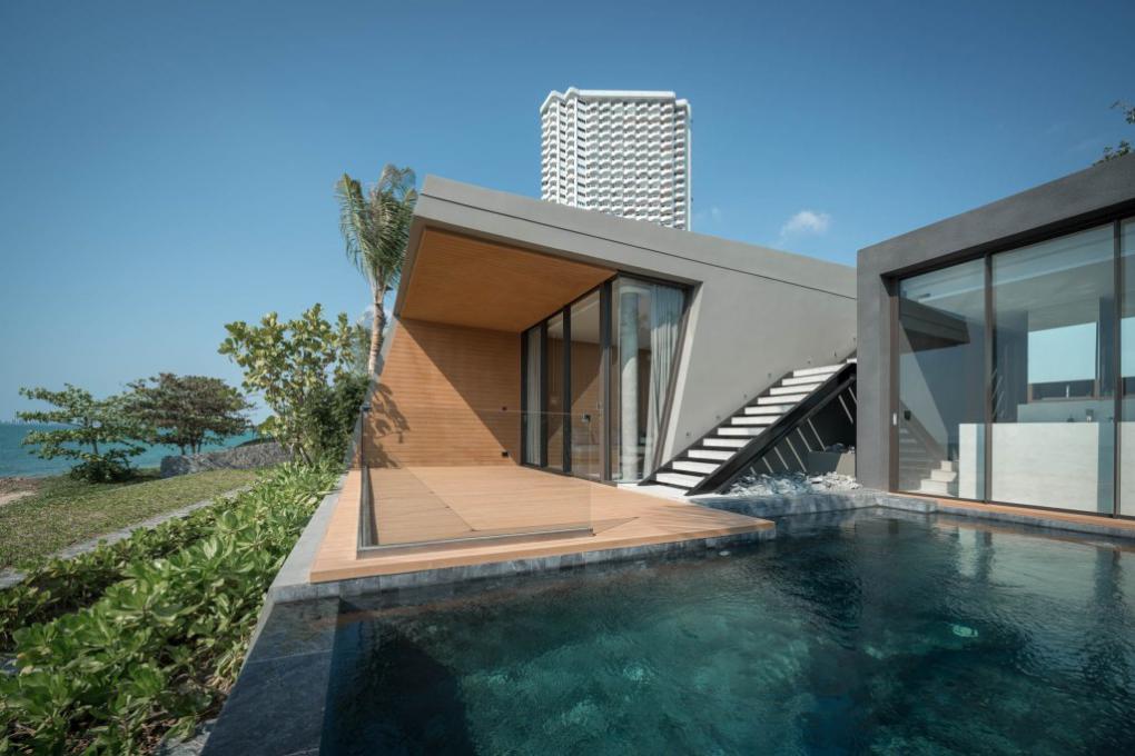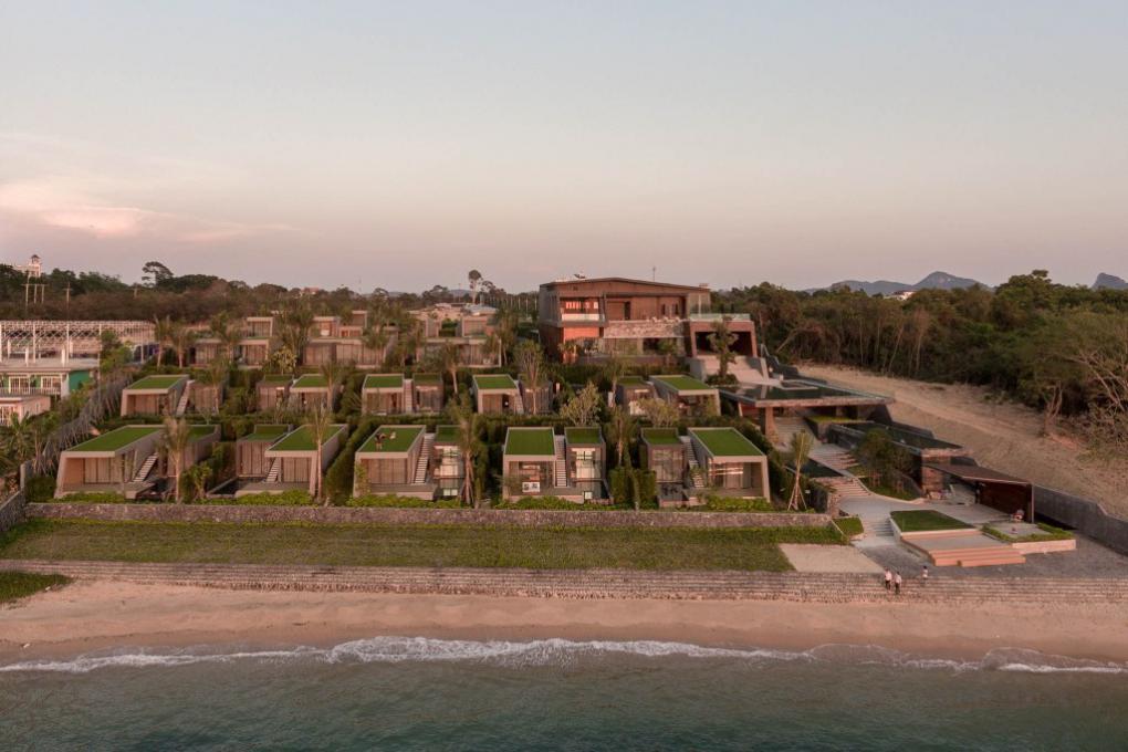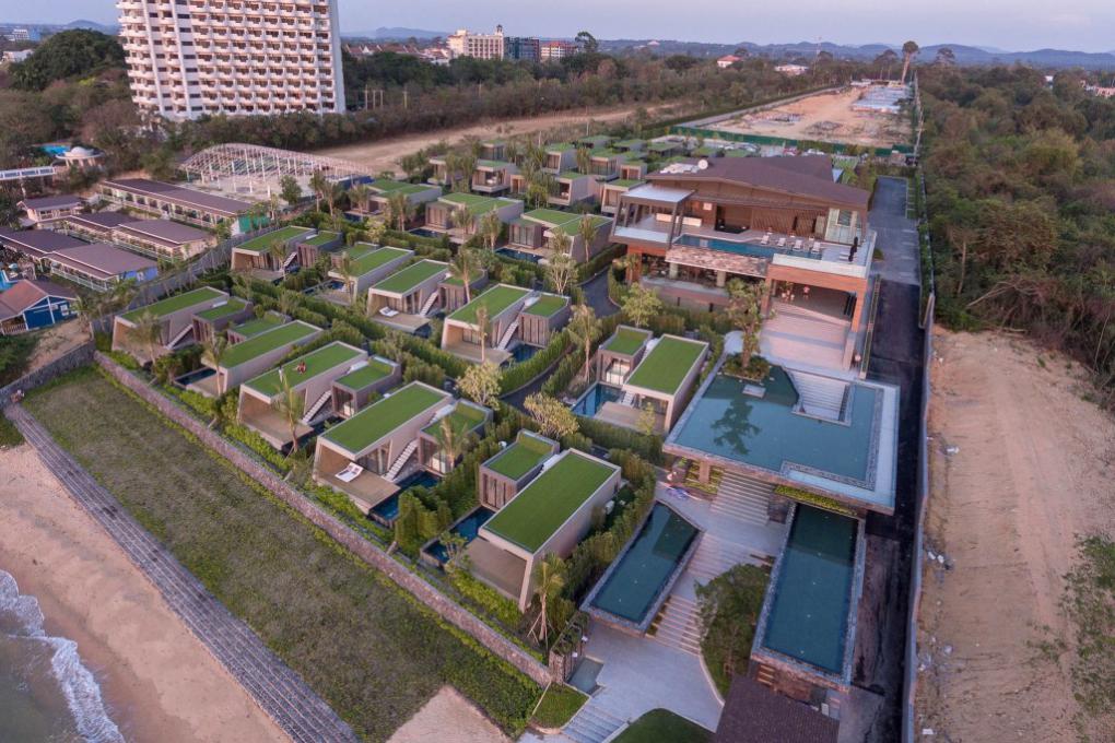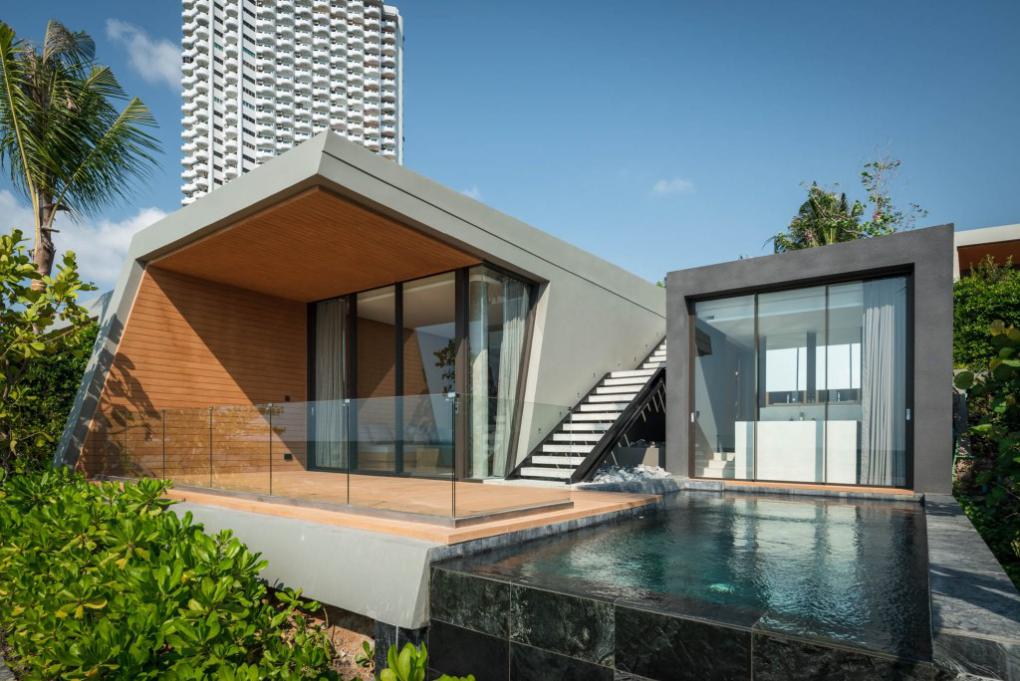 “แน่นอนว่า การทำวิลล่าจำเป็นจะต้องเห็นทะเลให้มากที่สุด ซึ่ง 4 แถวแรกที่ติดกับชายหาดเราออกแบบให้มองเห็นได้ทั้งหมด แถวแรกที่เตี้ยที่สุด อยู่สูงจากระดับชายหาดประมาณ 2 เมตร คือส่วน Beachfront 1 ห้องนอน ส่วนชั้นถัดมาคือ Beachside 1 ห้องนอน ซึ่งทั้งสองเป็นแบบที่ผมชอบมากที่สุด ความพิเศษของมันอยู่ตรงที่อาคารเข้าจากทางหลังคาซึ่งมีข้อดีตรงที่ช่วยรักษาสภาพของพื้นที่แบบเดิมเอาไว้ เพราะถ้าเข้าจากข้างล่าง มันหมายความว่าเราต้องขุดถนนข้างล่างอีก โดยหลังคาจะเป็นหลังคาหญ้าเทียมที่สามารถทำกิจกรรมข้างบนนั้นได้ นั่งเล่นชมวิว และยังเป็นตัวช่วยกรองแสง ลดความร้อนภายในห้องลง”